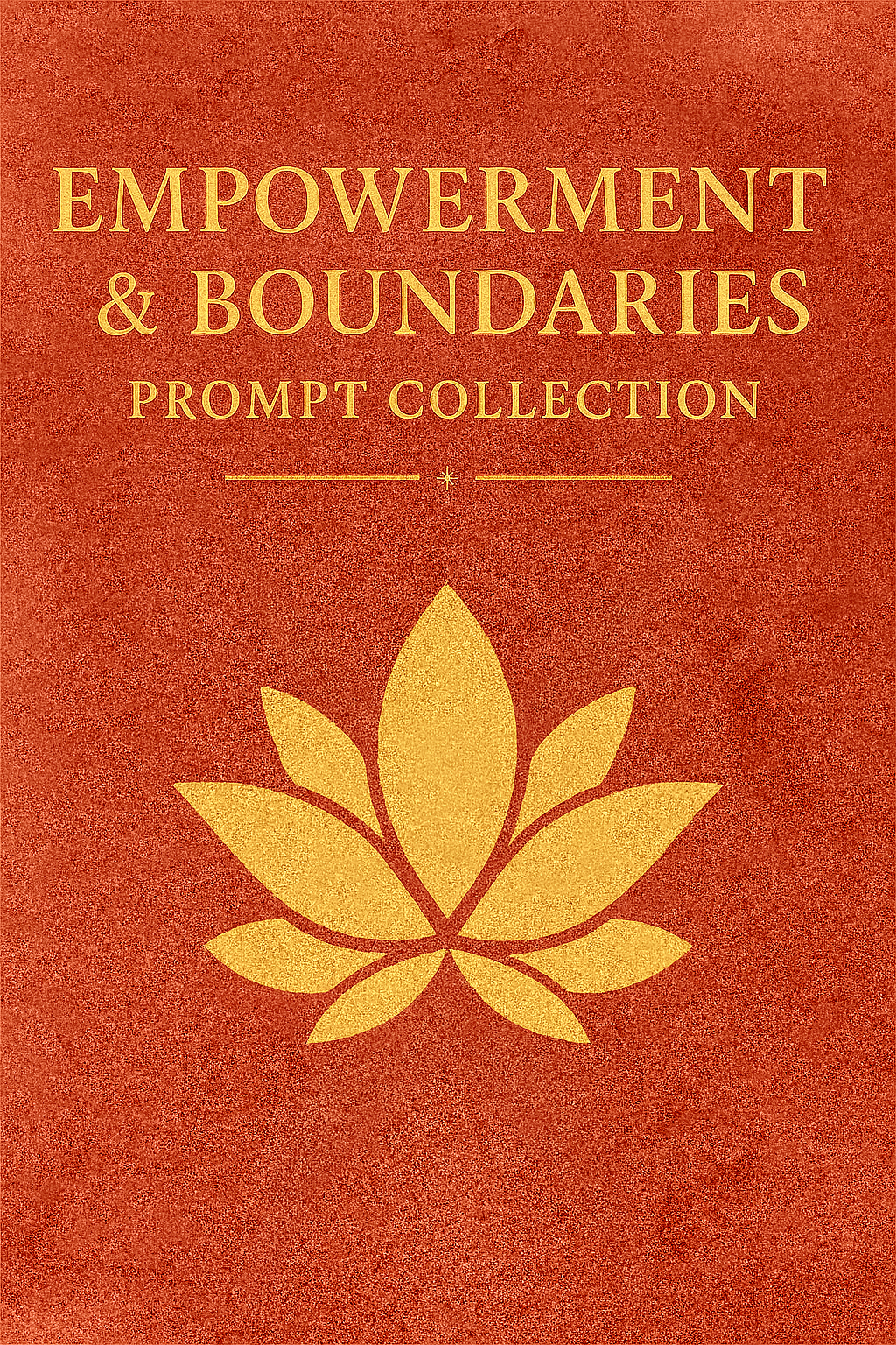 The Empowerment & Boundaries Prompt Collection guides you to explore your truth, embrace your voice, and build a sacred foundation of self-respect. Each prompt invites deep self-inquiry and practical reflection to help you move from overgiving or doubt into radiant self-trust and balance.